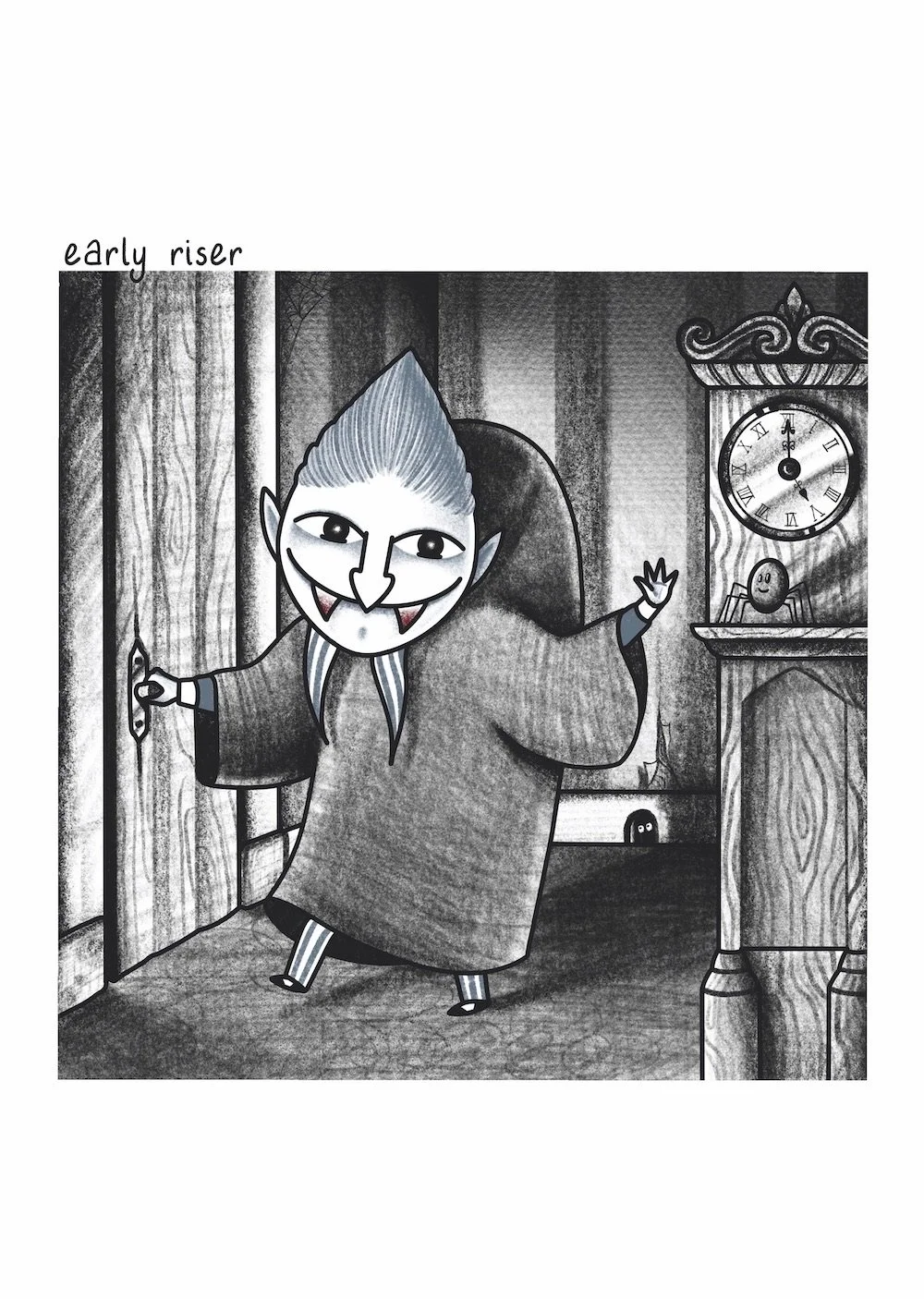Hodge the Vamp — loves that it gets darker earlier now. He has more time to enjoy mingling amongst the humans, perhaps even grab an early bite.