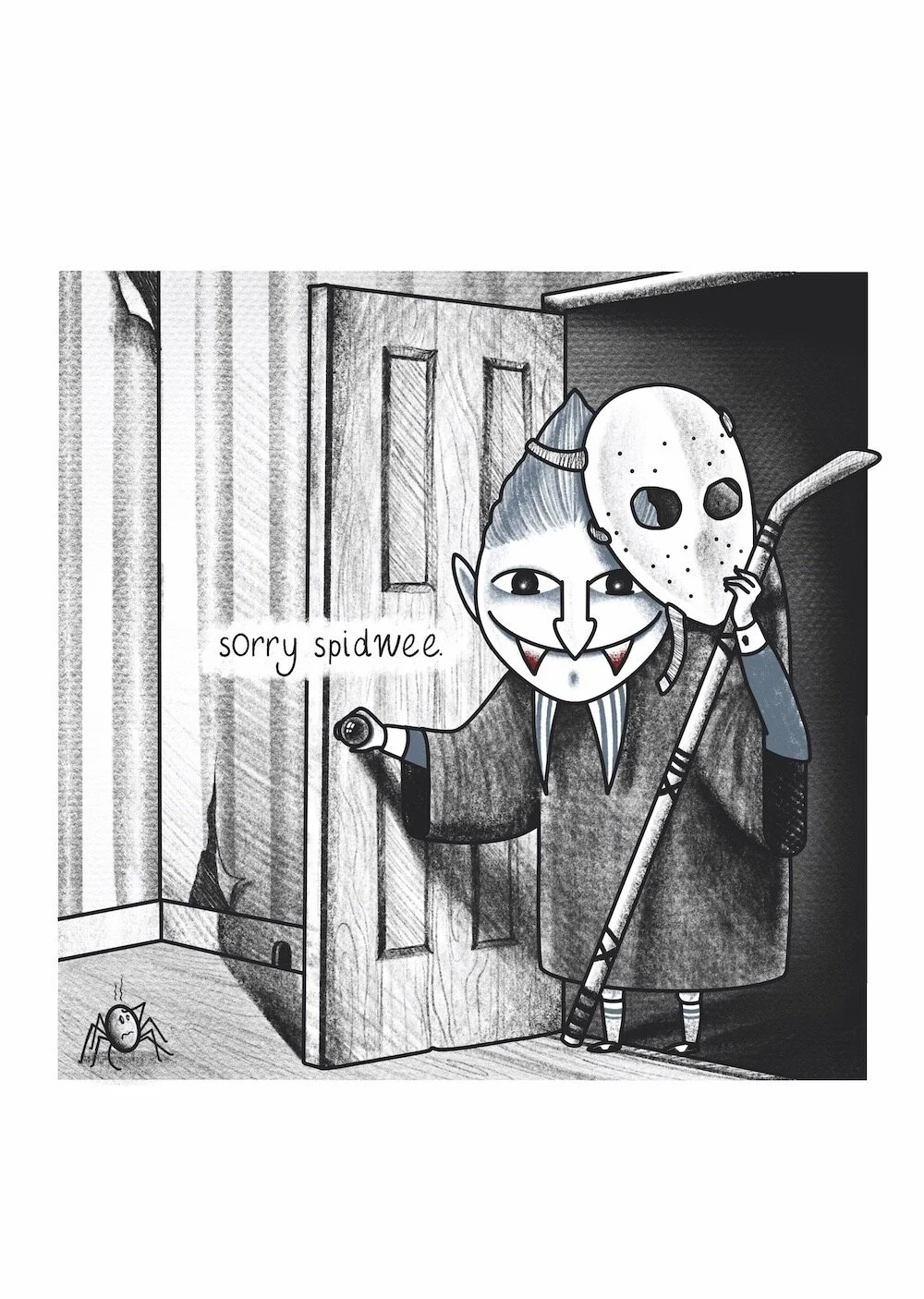 Superstitious Spidwee 13 Aug Written By Sophie Annison Hodge the Vamp — clumsily forgetting Spidwee is always a little jumpy on Friday 13th. Sophie Annison