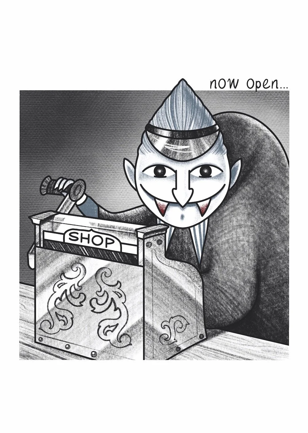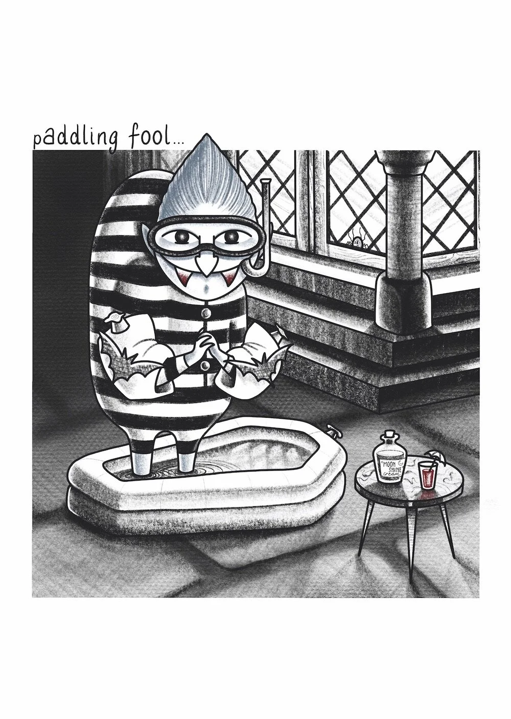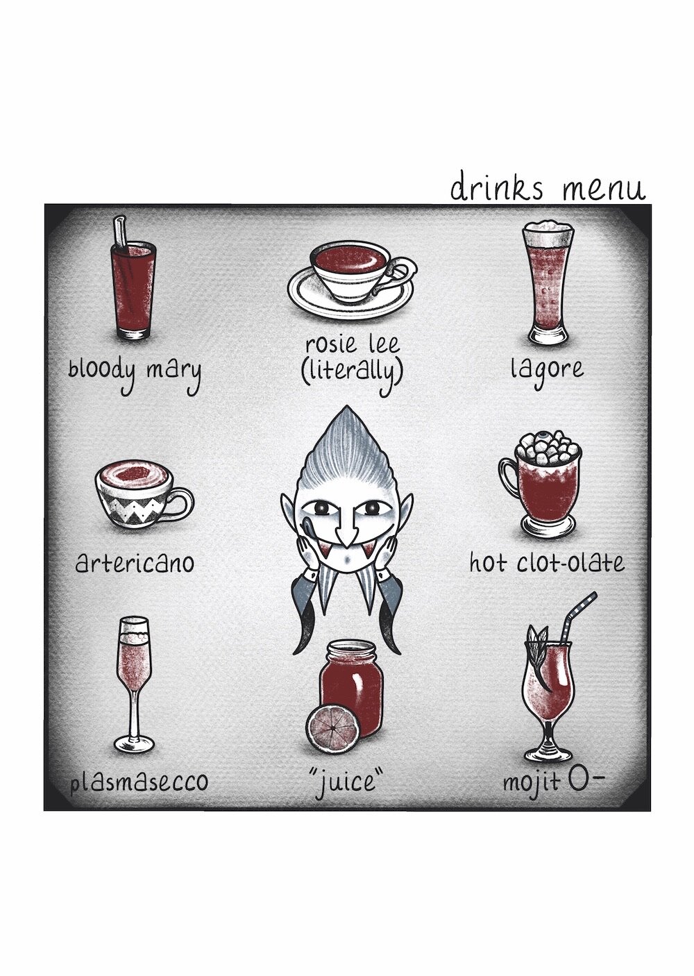 Hodge the Vamp — enjoying his favourite beverage at the local watering hole.